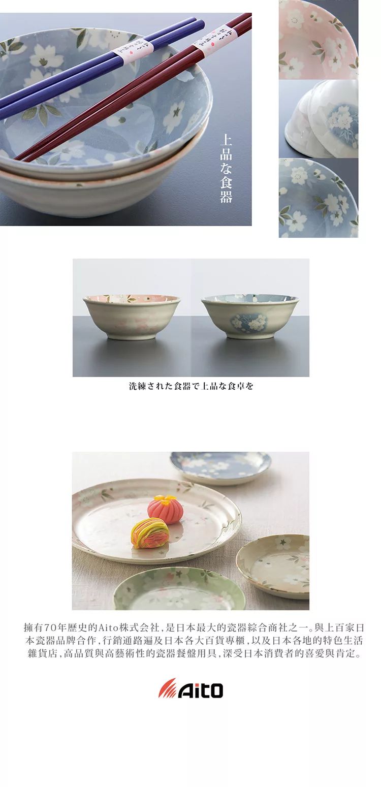 日本原产aito美浓烧陶瓷餐碗组合4件套 宇野千代樱吹雪 Aito陶瓷中国站官网