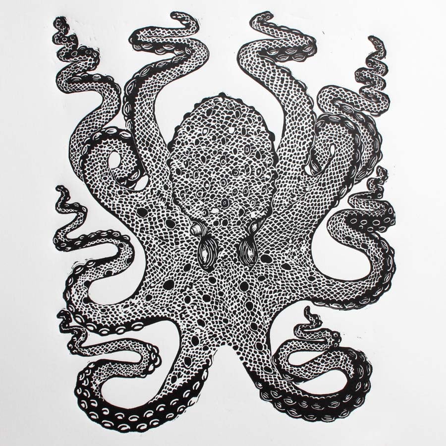 Black Octopus Lino Print Inkonk