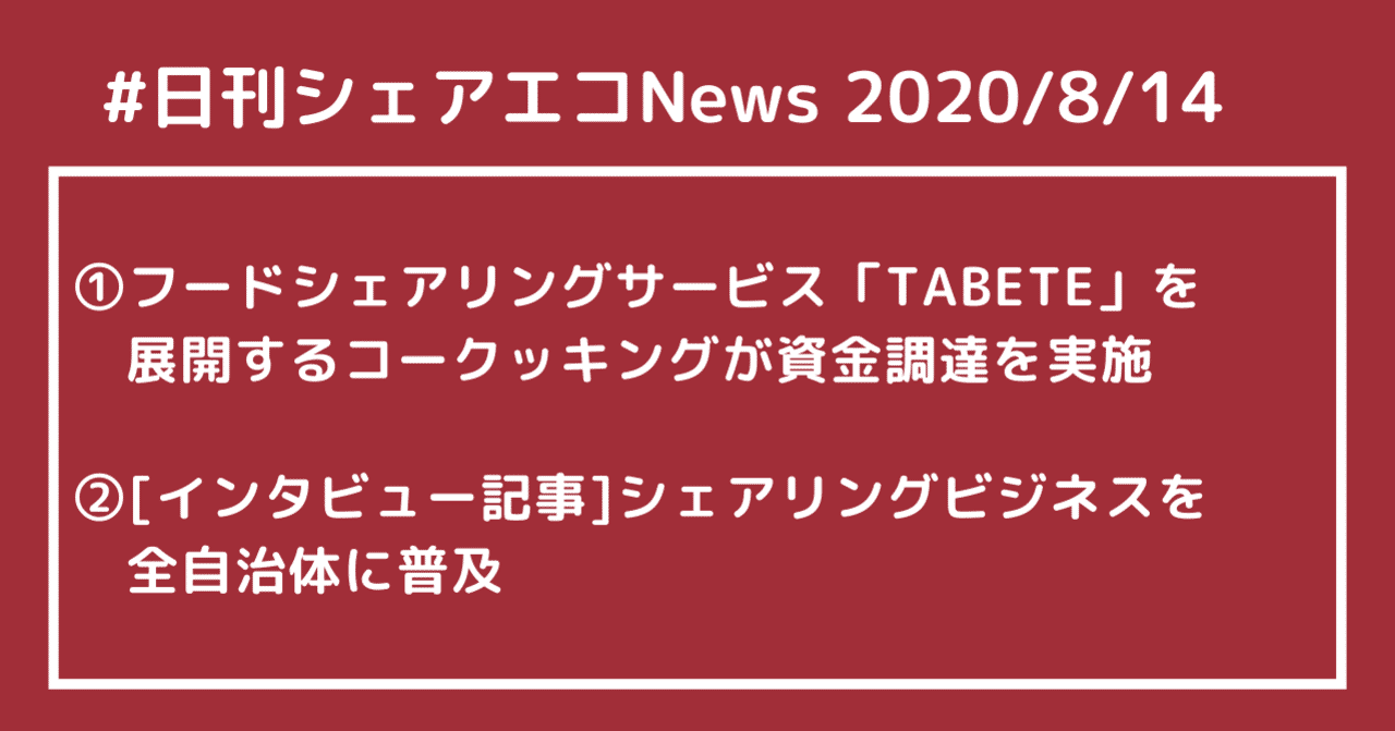 日刊シェアエコニュース フードシェアリングサービス Tabete を展開するコークッキングが資金調達を実施 シェアリングビジネスを全自治体に普及 インタビュー記事 8 14 デジタルトランスフォーメーション Dx にちょっと詳しくなるノート From Bizship Note