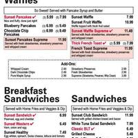 Sunset Cafe Menu In Erie Pennsylvania Usa